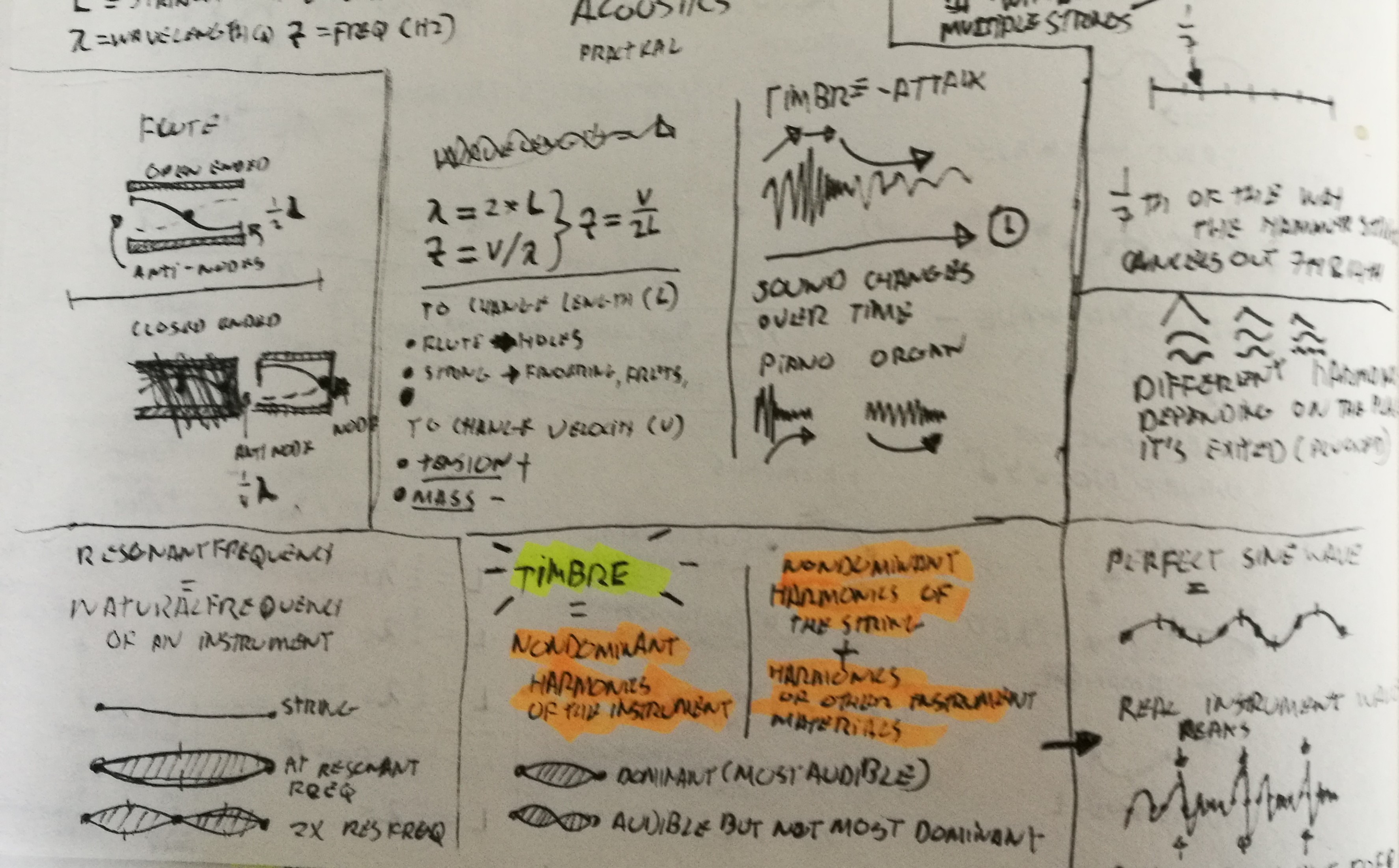 At this point in the process I became aware that I didn't know very much about the physics of musical instruments, so I took the time to research acoustics. I learned about how sound travels, what determines the quality of a sound and how certain frequencies are created.