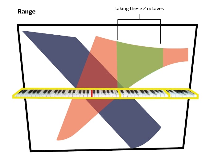 On scale design of the keys and a visualization of the range that was practical for a reasonaby portable instrument