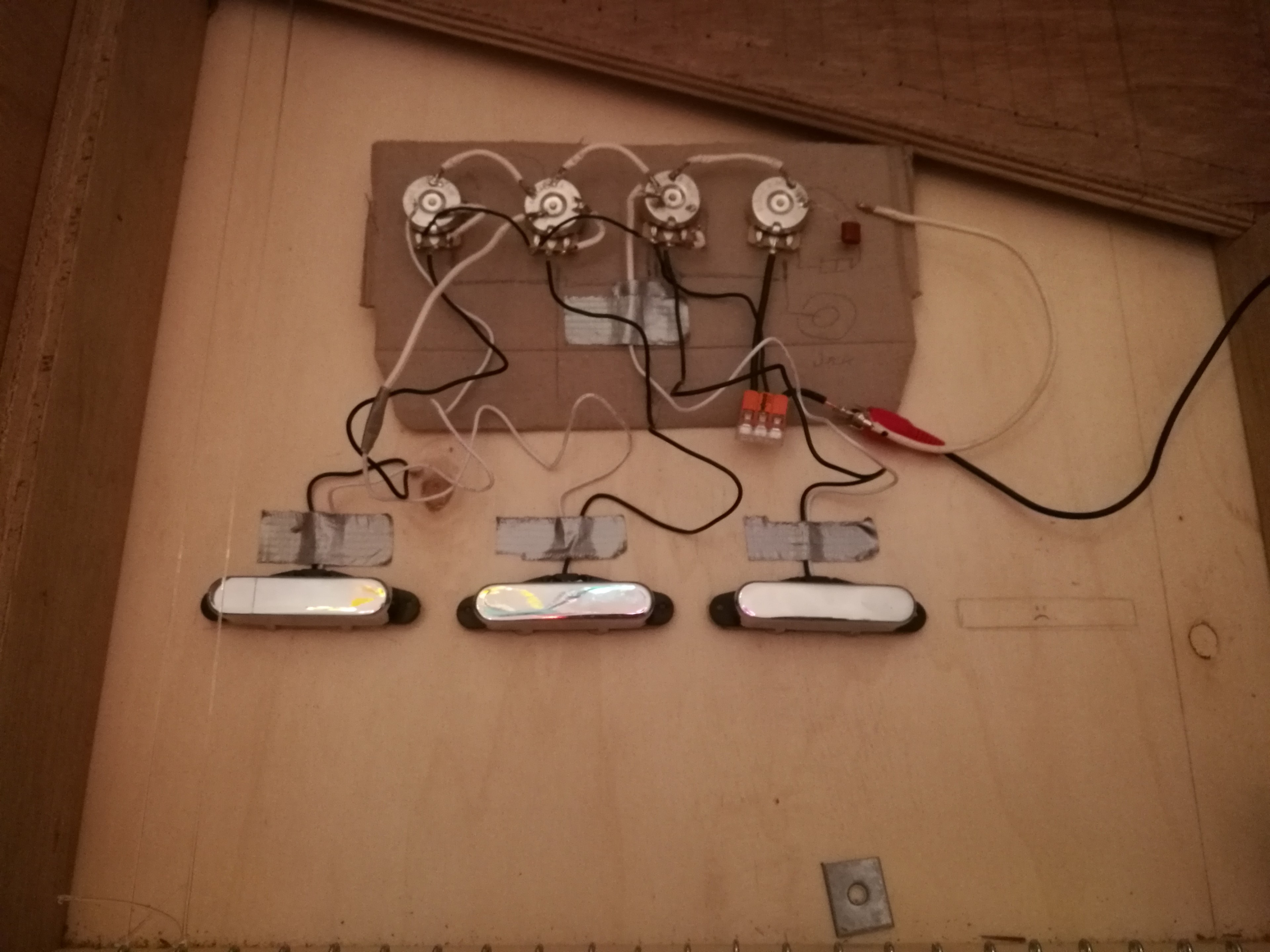 I broke down the instrument into different components and before building the more complicated parts made a few prototypes to test ideas and catch mistakes before the building process. I built a prototype of the hammer mechanism and experimented with tuning strings and setting up the guitar pickups.