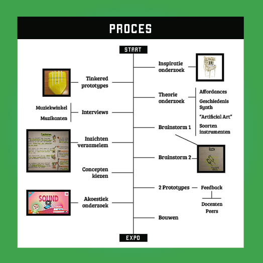 Troughout the project I looked into a lot of theory concerning musical instruments and product design. I looked at the balance between novelty and familiarity, types of musical instruments and watched documentaries about the history and development of new musical instruments.
