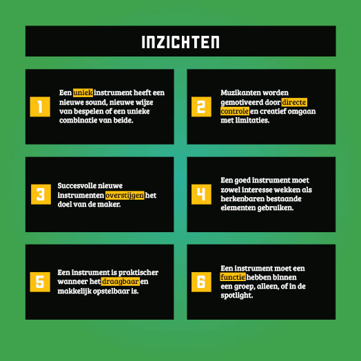 To conclude my research I collected all my insights from interviews, theory, inspiration and prototypes and worked them into guidelines for designing my instrument.